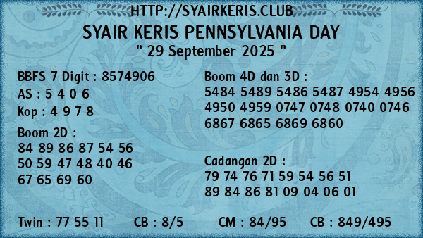 Prediksi Syair Keris Jitu Pennsylvania Day Senin, 29 September 2025
