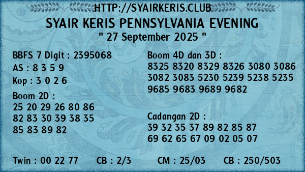 Prediksi Syair Keris Jitu Pennsylvania Evening Sabtu, 27 September 2025