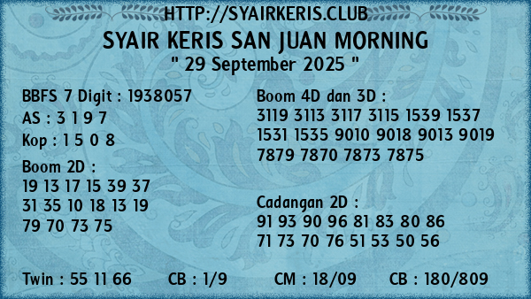 Prediksi Syair Keris Jitu San Juan Morning Senin, 29 September 2025