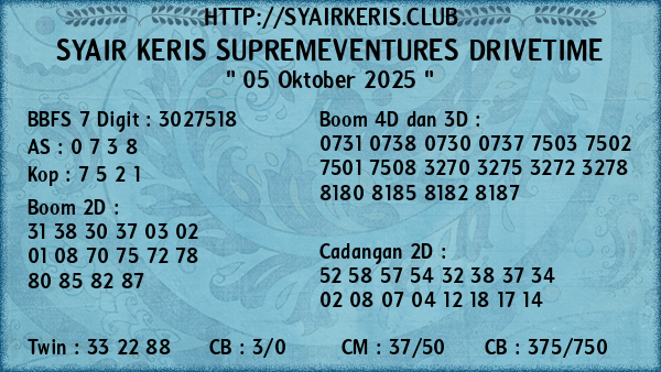 Prediksi Syair Keris Jitu Supremeventures Drivetime Minggu, 05 Oktober 2025