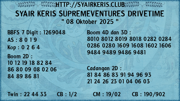 Prediksi Syair Keris Jitu Supremeventures Drivetime Rabu, 08 Oktober 2025