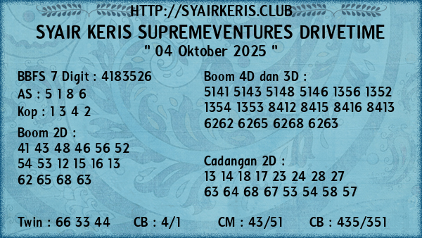 Prediksi Syair Keris Jitu Supremeventures Drivetime Sabtu, 04 Oktober 2025