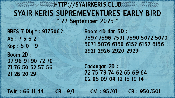 Prediksi Syair Keris Jitu Supremeventures Early Bird Sabtu, 27 September 2025