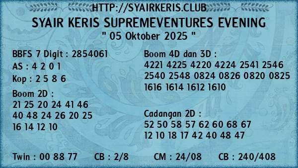 Prediksi Syair Keris Jitu Supremeventures Evening Minggu, 05 Oktober 2025