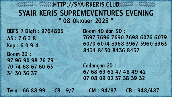 Prediksi Syair Keris Jitu Supremeventures Evening Rabu, 08 Oktober 2025