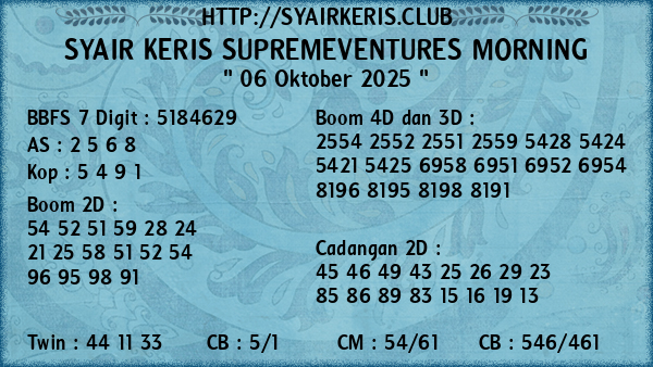 Prediksi Syair Keris Jitu Supremeventures Morning Senin, 06 Oktober 2025