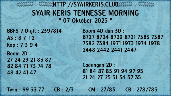 Prediksi Syair Keris Jitu Tennesse Morning Selasa, 07 Oktober 2025