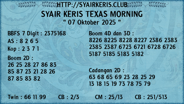 Prediksi Syair Keris Jitu Texas Morning Selasa, 07 Oktober 2025