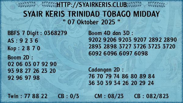 Prediksi Syair Keris Jitu Trinidad Tobago Midday Selasa, 07 Oktober 2025
