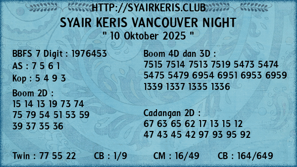 Prediksi Syair Keris Jitu Vancouver Night Jumat, 10 Oktober 2025