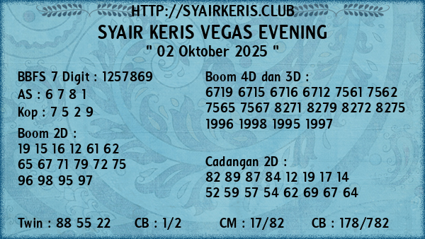 Prediksi Syair Keris Jitu Vegas Evening Kamis, 02 Oktober 2025
