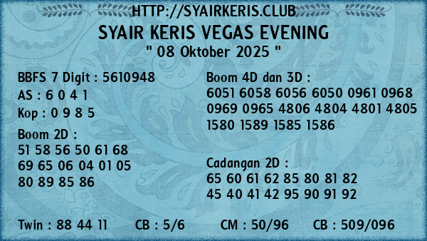 Prediksi Syair Keris Jitu Vegas Evening Rabu, 08 Oktober 2025