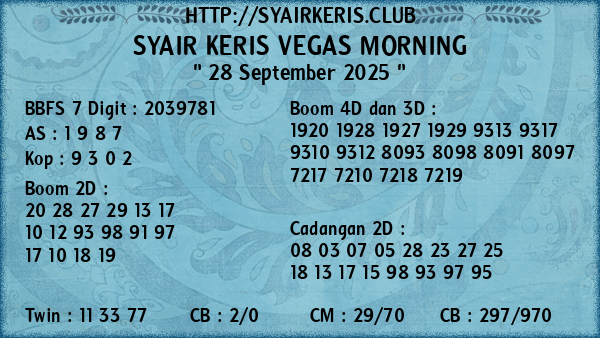 Prediksi Syair Keris Jitu Vegas Morning Minggu, 28 September 2025