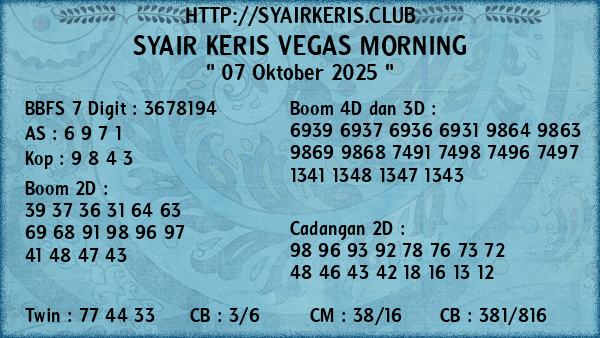 Prediksi Syair Keris Jitu Vegas Morning Selasa, 07 Oktober 2025