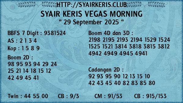 Prediksi Syair Keris Jitu Vegas Morning Senin, 29 September 2025
