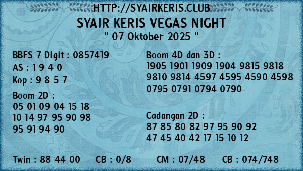 Prediksi Syair Keris Jitu Vegas Night Selasa, 07 Oktober 2025