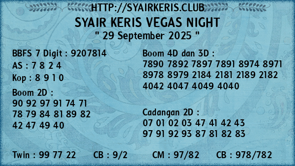 Prediksi Syair Keris Jitu Vegas Night Senin, 29 September 2025