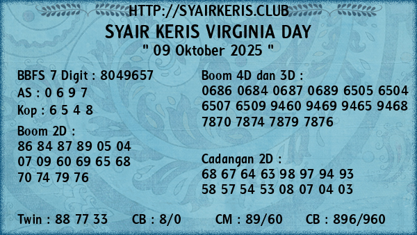 Prediksi Syair Keris Jitu Virginia Day Kamis, 09 Oktober 2025