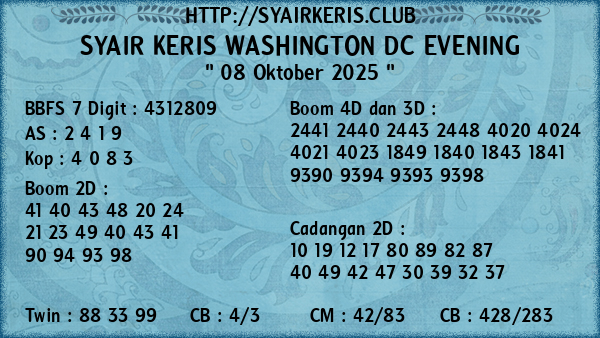 Prediksi Syair Keris Jitu Washington Dc Evening Rabu, 08 Oktober 2025