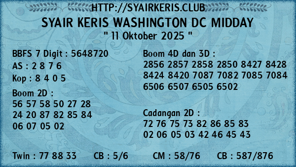 Prediksi Syair Keris Jitu Washington Dc Midday Sabtu, 11 Oktober 2025