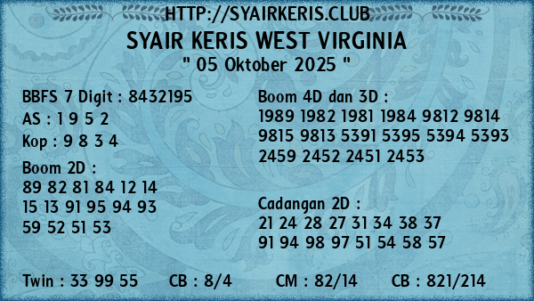 Prediksi Syair Keris Jitu West Virginia Minggu, 05 Oktober 2025