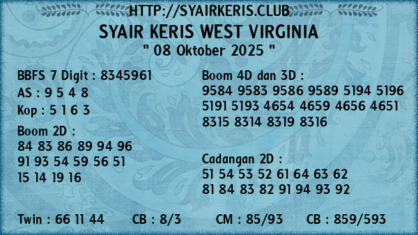 Prediksi Syair Keris Jitu West Virginia Rabu, 08 Oktober 2025