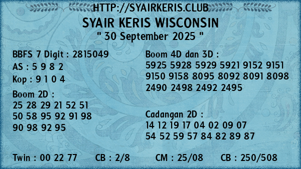 Prediksi Syair Keris Jitu Wisconsin Selasa, 30 September 2025